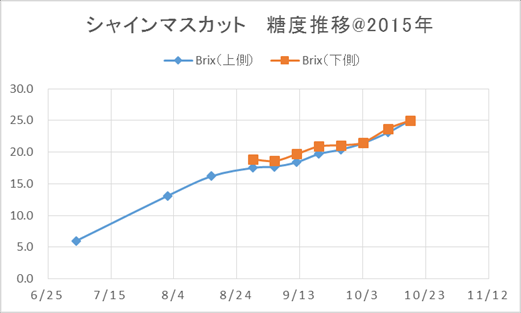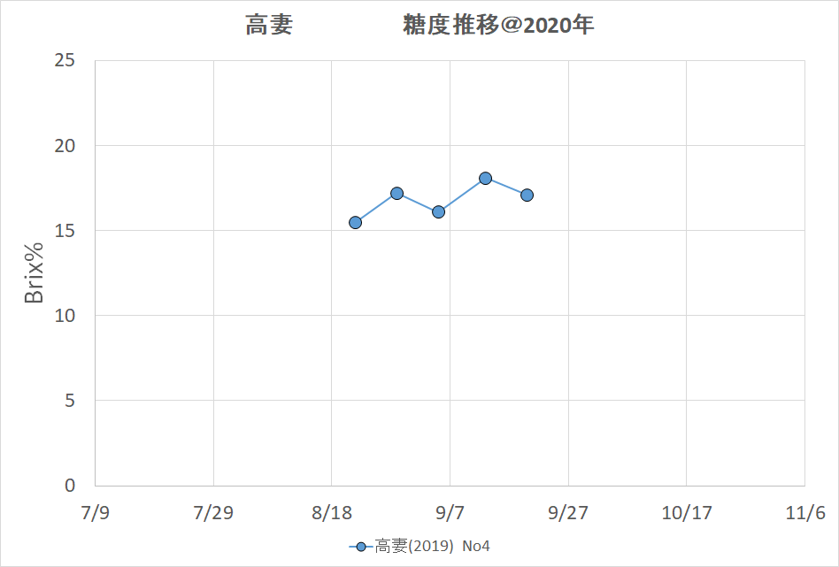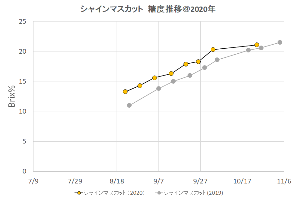 糖度の変化は、8月末~9月中旬に一旦停滞し、
