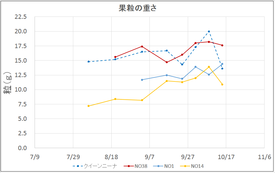 糖度の測定のとき、粒の重さも測定していた