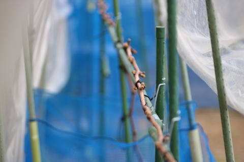 短梢剪定で、1芽、もしくは、2芽を残した。