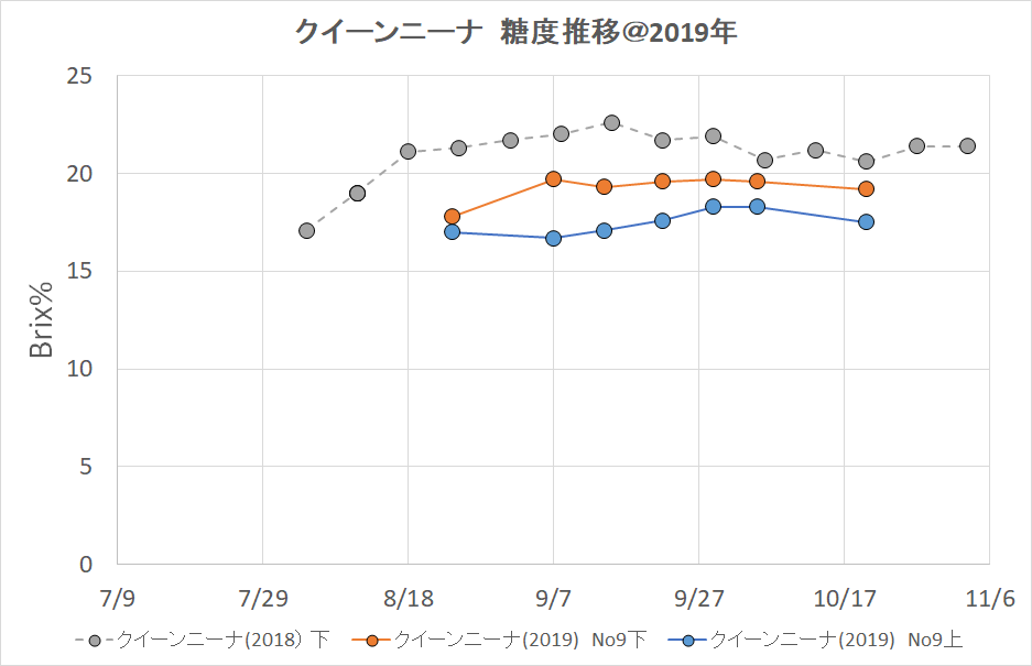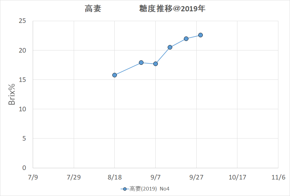 糖度の変化は、8月末~9月中旬に一旦停滞し、