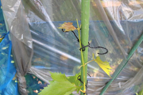 残り1つの芽は場所が悪い。支柱に近すぎる。