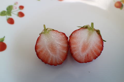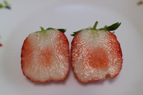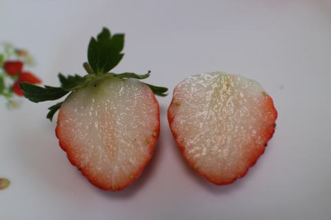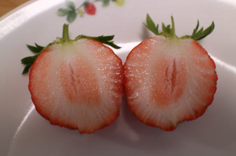 果肉はやわらかい方。(章姫よりは固いが、)