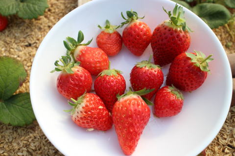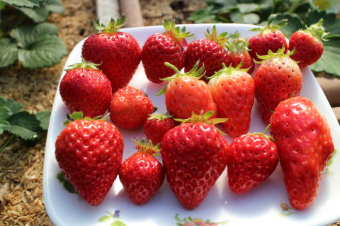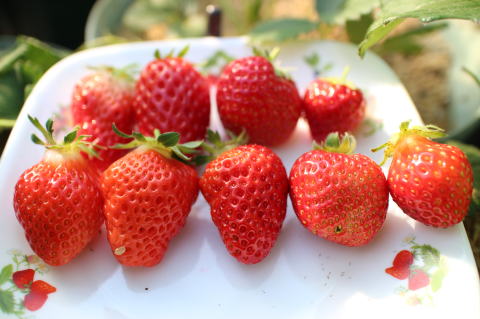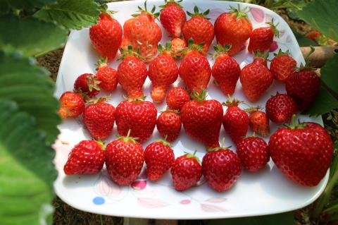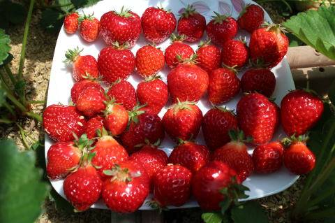 いちごを25個収穫した。