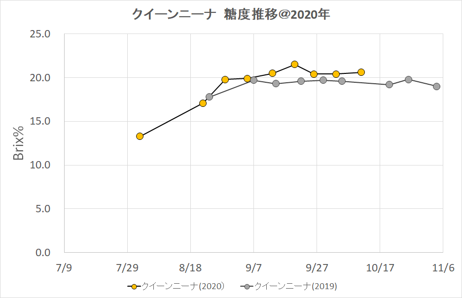 糖度の変化は、8月末~9月中旬に一旦停滞し、