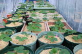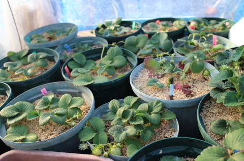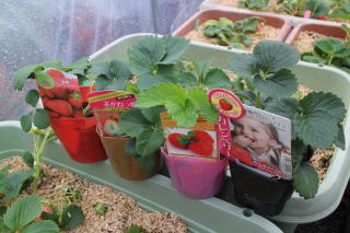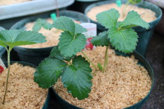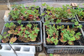 子株は、雨を避けるため、いちごハウス内に置