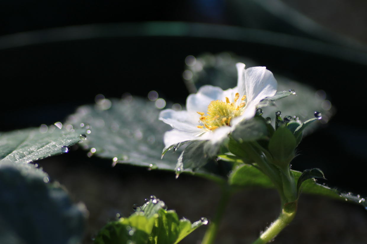 いた。ハウス内のいちごの葉裏に水をかけた