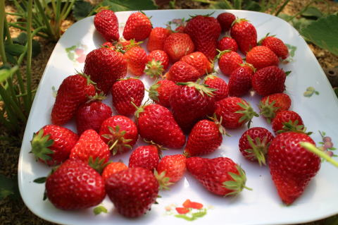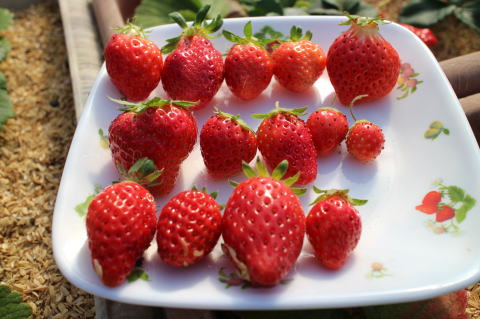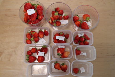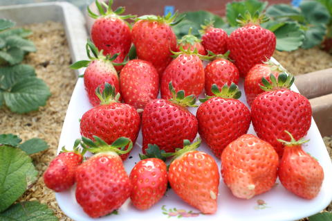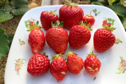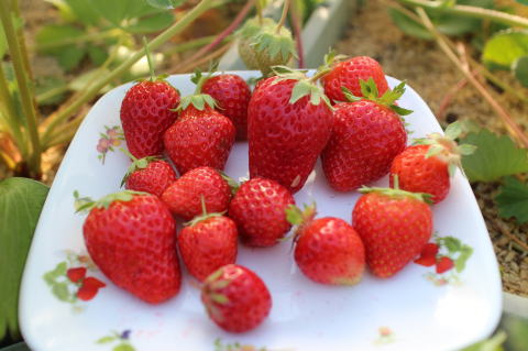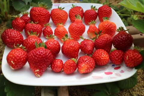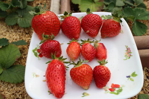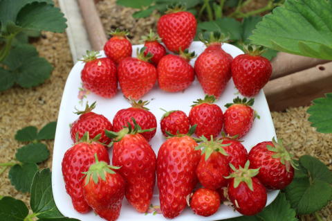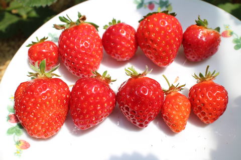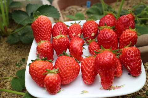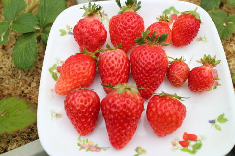 いちごを25個収穫した。