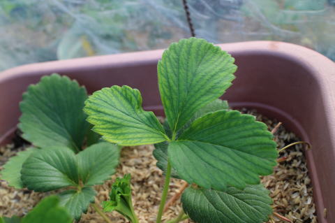 葉が焼けていた苺が数株あった。ちょうど、