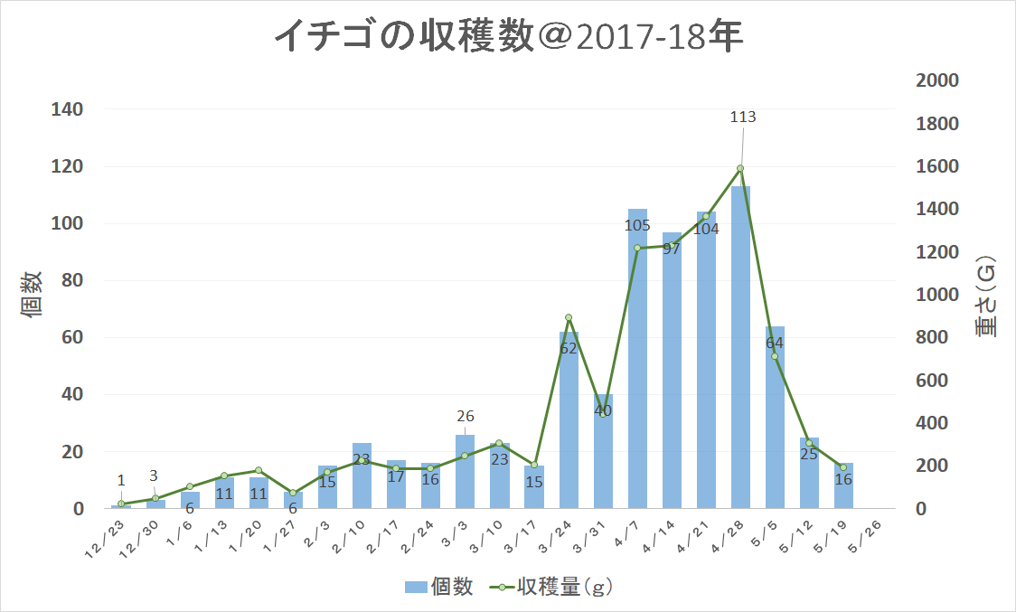 1週間毎の収穫数の推移です。